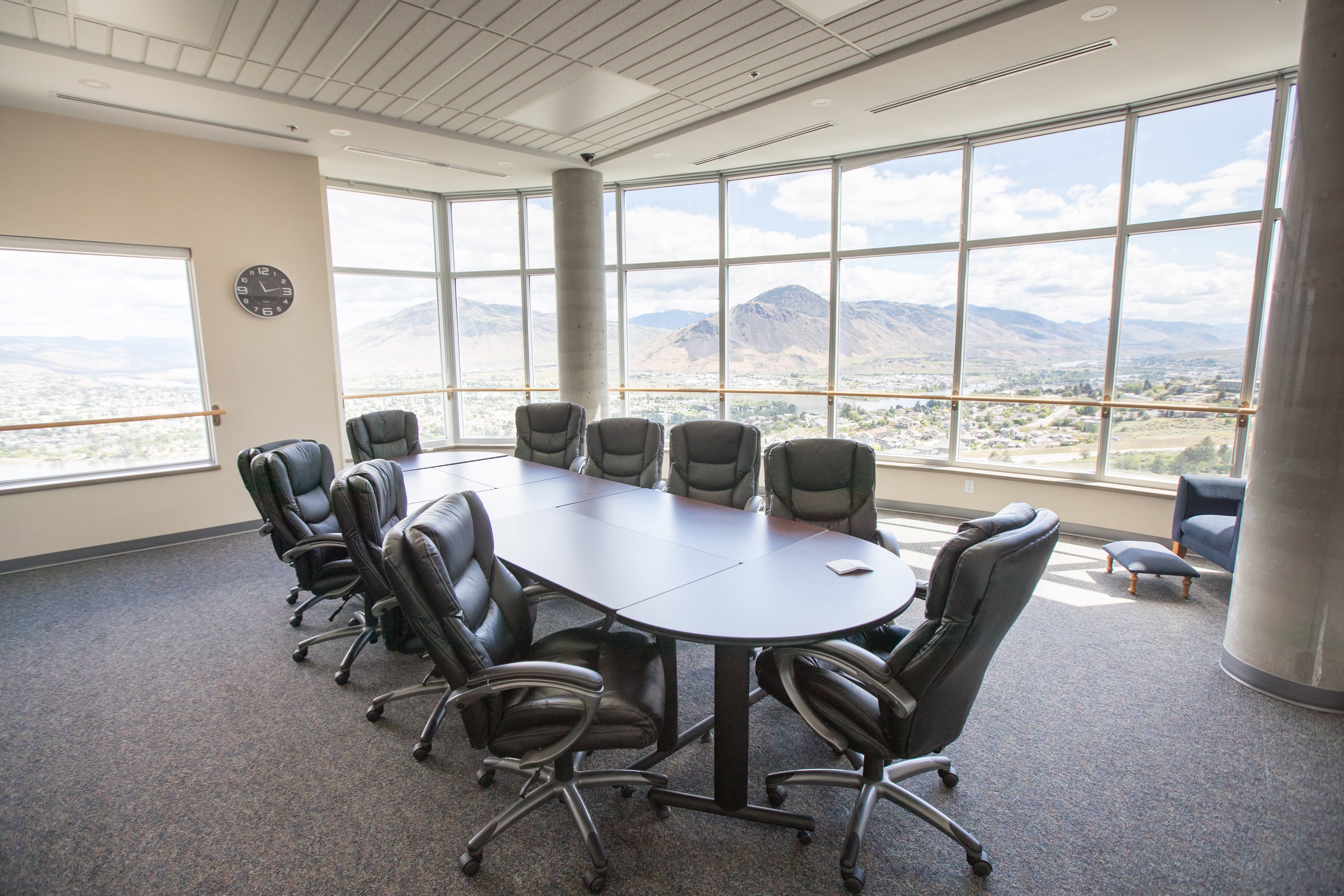 Located atop the tallest building on the TRU campus, the 11th Floor Meeting Room offers one of the most impressive vantage points in the city. Elevate your event with sweeping views of the Kamloops landscape, including the stunning North and South Thompson Rivers. This bright, intimate space is ideal for meetings, workshops, and small receptions—perfect for gatherings that inspire connection and focus.