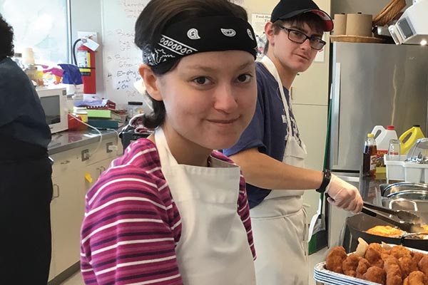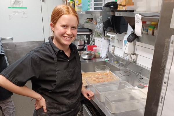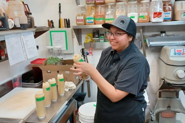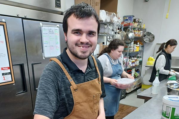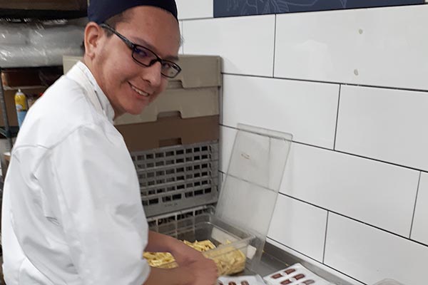 Daphne Peterson prepares dessert bread for sale during her ESTR practicum at Gold Leaf Pastries.