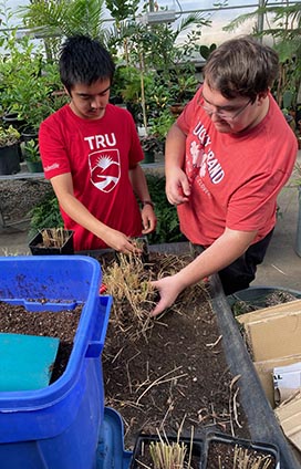 TRU horticulture student preparing plant trays