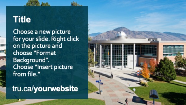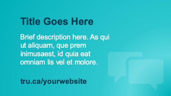 The digital screen network is available to TRU departments and faculties to share important information and interesting activities to TRU students. To learn more about the TRU digital signage network and submit your ad, see On Campus Advertising.